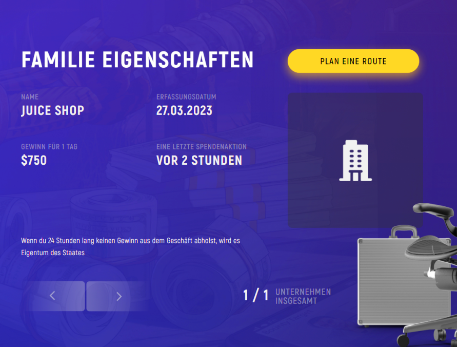 Der Handel mit Säften aus eigener Produktion ist der offizielle Teil unseres Geschäftsmodells, um das Geld, welches durch die Waffen & Drogen eingenommen, wird zu waschen